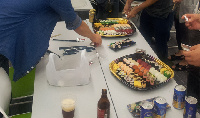 社内で勉強会やライトニングトーク会を定期的に開催しています。途中でピザなどを食べながら気軽に発表し、皆で聴いたり話したりする場です。