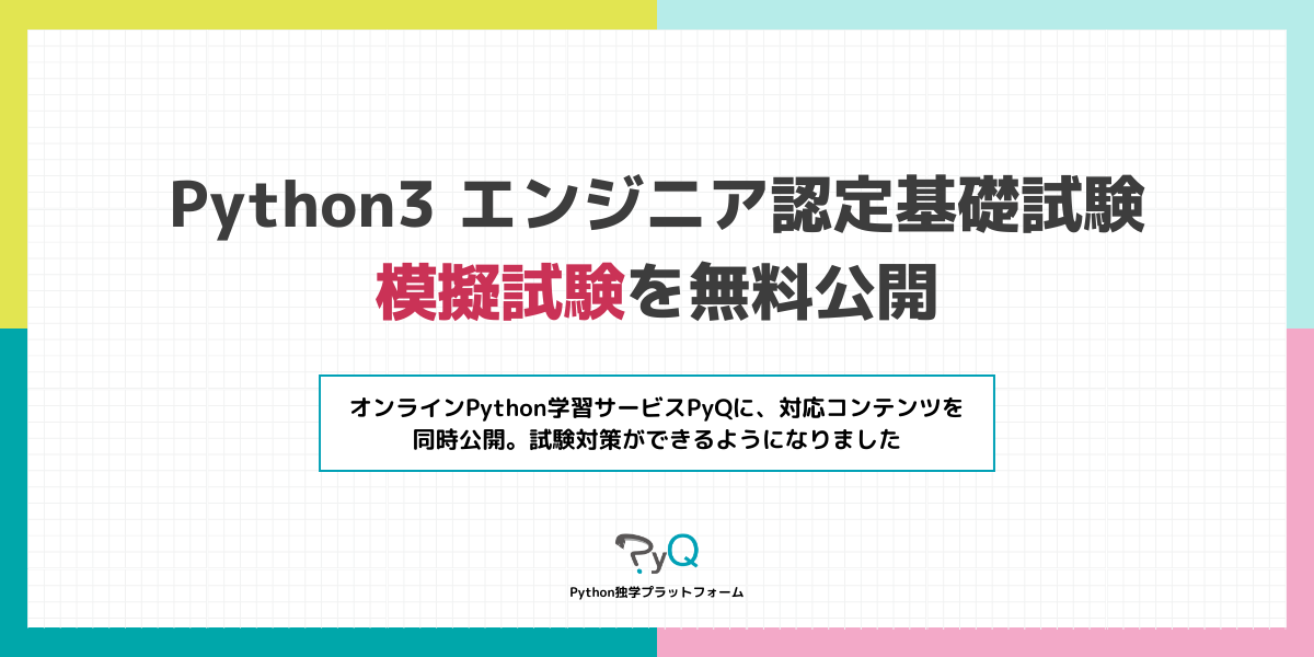 ▼ Python3 エンジニア認定基礎試験 模擬試験: https://lpm.pyq.jp/qualify_edbasic_entry/