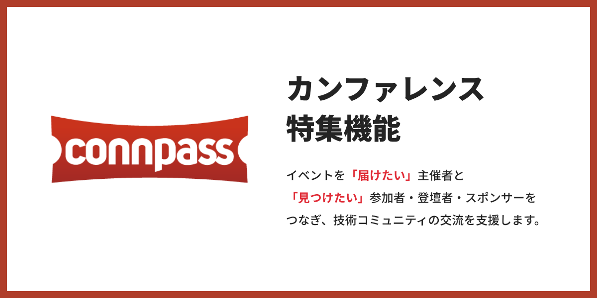 connpassは、イベントを「届けたい」主催者と、「見つけたい」参加者・登壇者・スポンサーをつなぐことで、技術コミュニティの広がりと交流を支援していきます。
